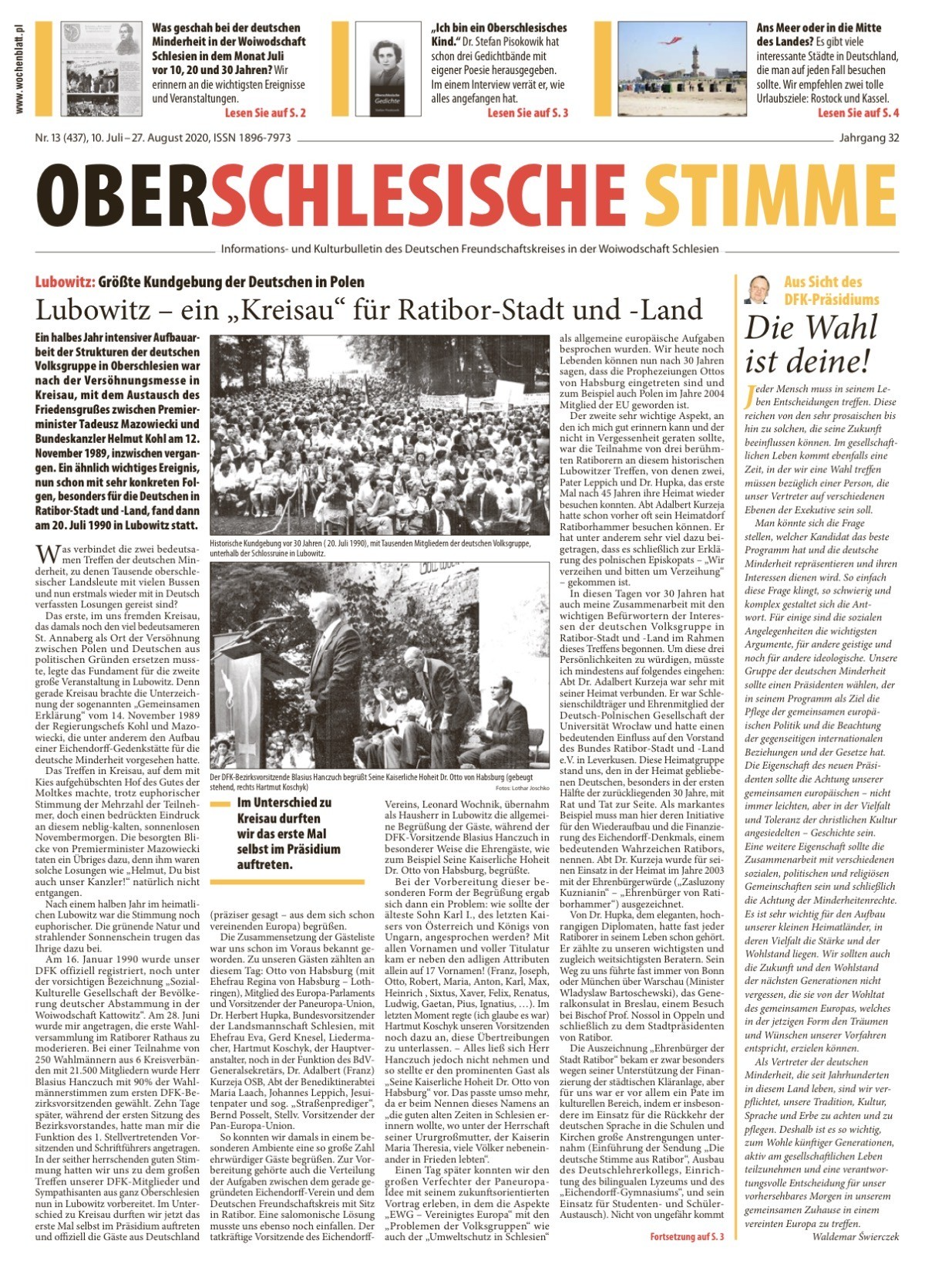 Ehrengast bei der „Europa-Kundgebung“ war der damalige Europaabgeordnete Dr. Otto von Habsburg, der auch erstmals Schlesien besuchte. Seine damaligen Mitarbeiter Bernd Posselt und Knut Abraham begleiteten ihn, der Erste ist heute Sprecher der Sudetendeutschen, der Zweite Mitglied des Deutschen Bundestages und Polen-Beauftragter der Bundesregierung.