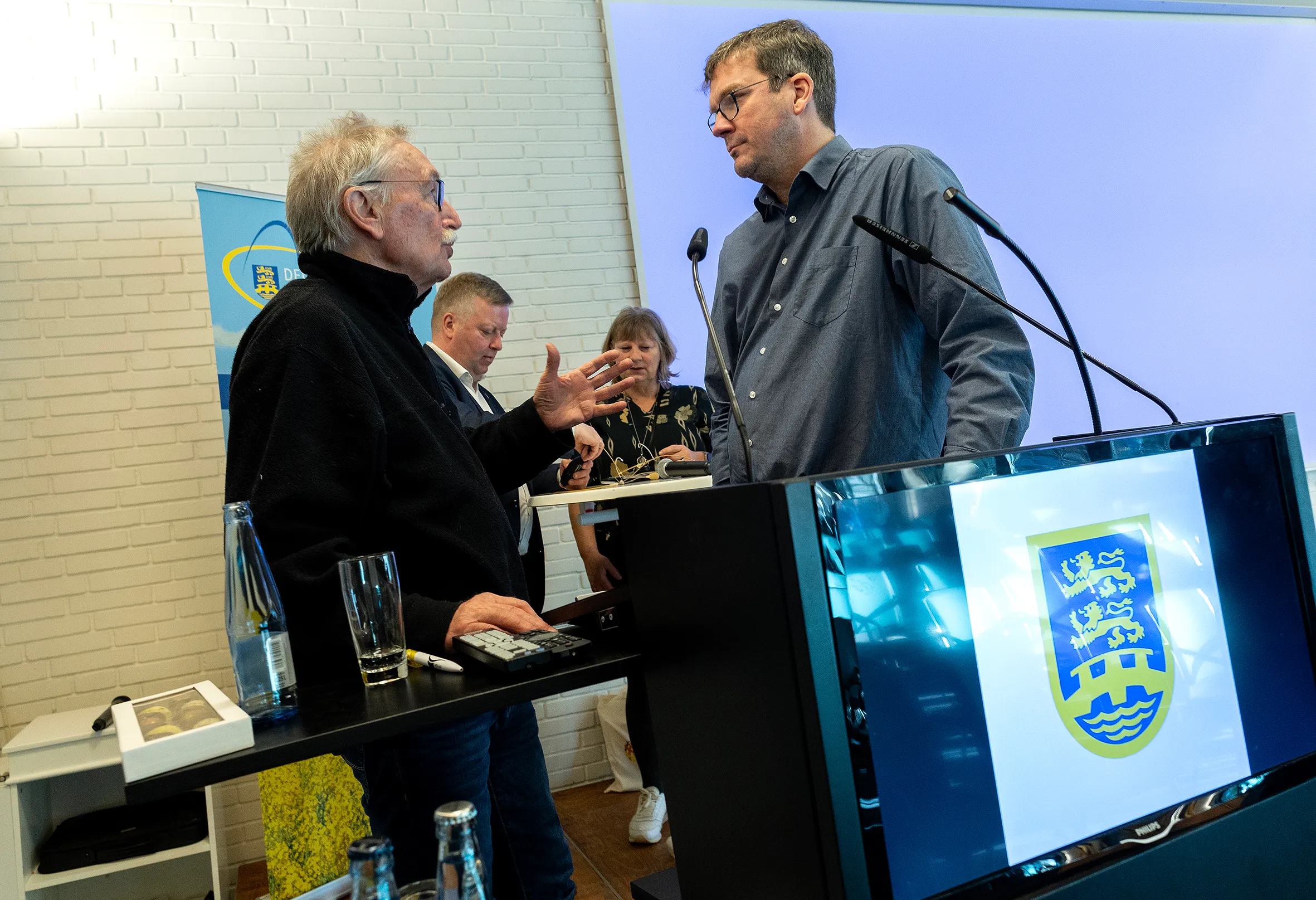 Seinen Besuch in Sankelmark nutzte Koschyk auch für intensive Gespräche mit der Führung des BDN über weitere gemeinsame Projekte mit der Stiftung Verbundenheit in der Zukunft. Auch mit dem langjährigen BDN-Vorsitzenden und FUEN-Präsidenten Hans Heinrich Hansen und dem jetzigen FUEN-Vizepräsidenten Gösta Toft tauschte sich Hartmut Koschyk über aktuelle minderheitenpolitische Fragen aus.