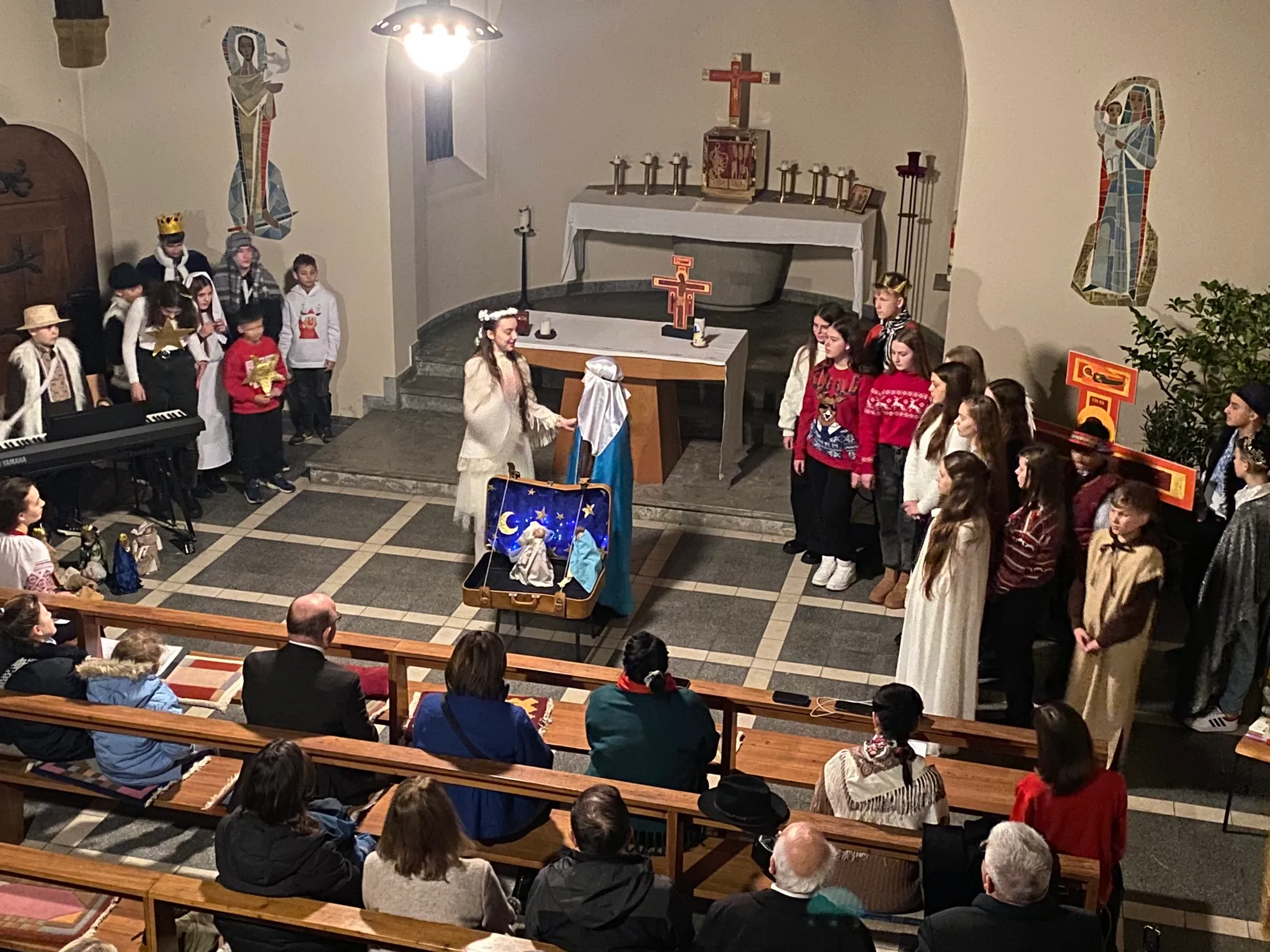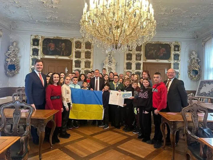 Bereits am Vortag fand ein Treffen mit der Jugendgruppe aus Mukatschewo statt. In der Kapelle des E.T.A. –Hoffmann-Gymnasiums boten sie ein faszinierendes Krippenspiel in deutscher Sprache dar. Ein magischer Moment der Verbundenheit. Nach der Aufführung gab es eine herzliche Begegnungsmöglichkeit für alle Anwesenden. Die Jugendgruppe wurde von Julia Taips begleitet. Julia Taips hat deutsche Wurzeln und spricht fließend Deutsch. Sie vertritt seit Jahren die deutsche Minderheit aus Transkarpatien im Rat der Deutschen in der Ukraine (RdU) und ist Vorsitzende der deutschen Jugend Transkarpatien. Ebenfalls anwesend war auch Volodymyr Leysle, Vorsitzender des Rats der Deutschen in der Ukraine (RdU), der die Entwicklung der Partnerschaft mit der Ukraine tatkräftig unterstützt.