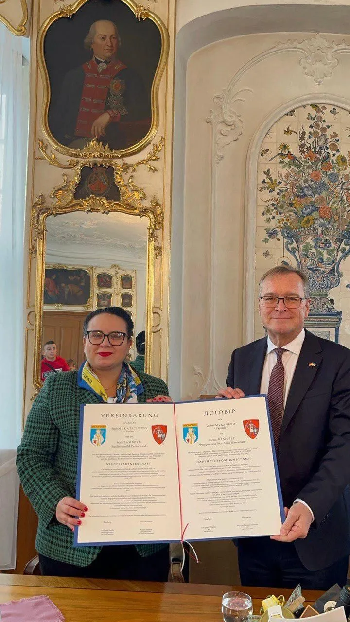 Bei einem Besuch einer ukrainischen Delegation aus Mukatschewo unter Führung der stellv. Bürgermeisterin Julia Taips in der Stadt Bamberg wurde zwischen den Vertretern beider Städte eine Städtepartnerschaft vereinbart.