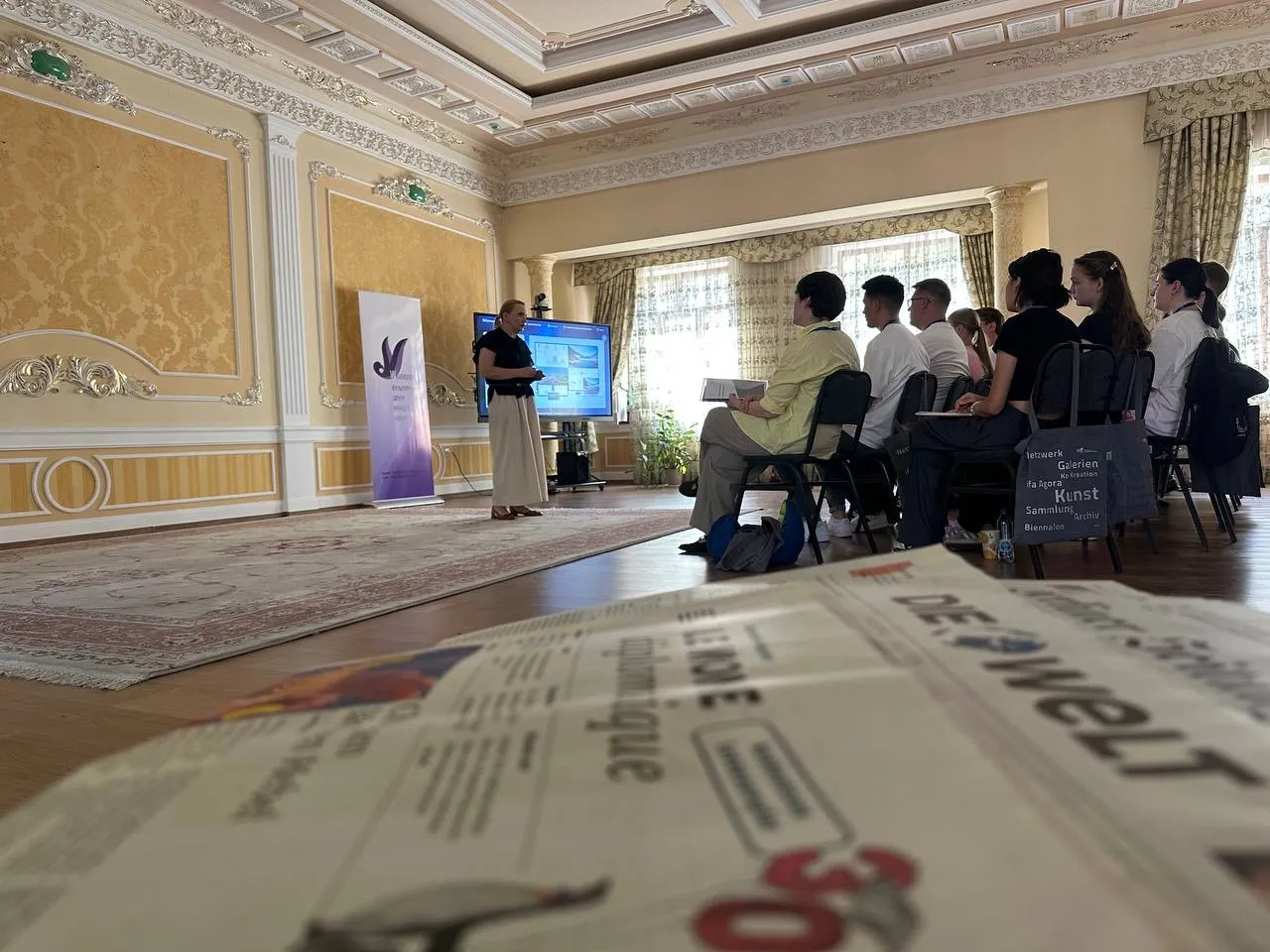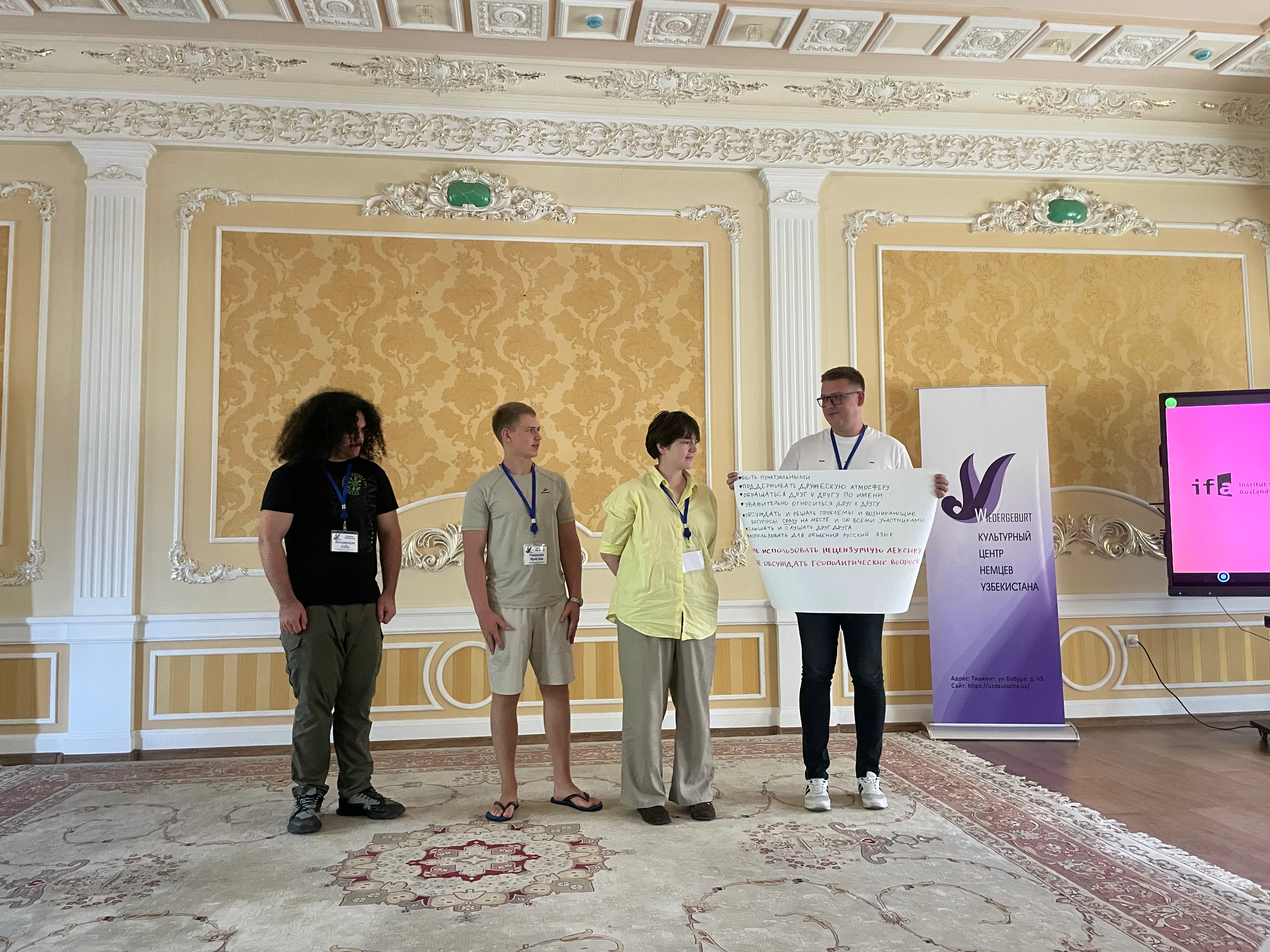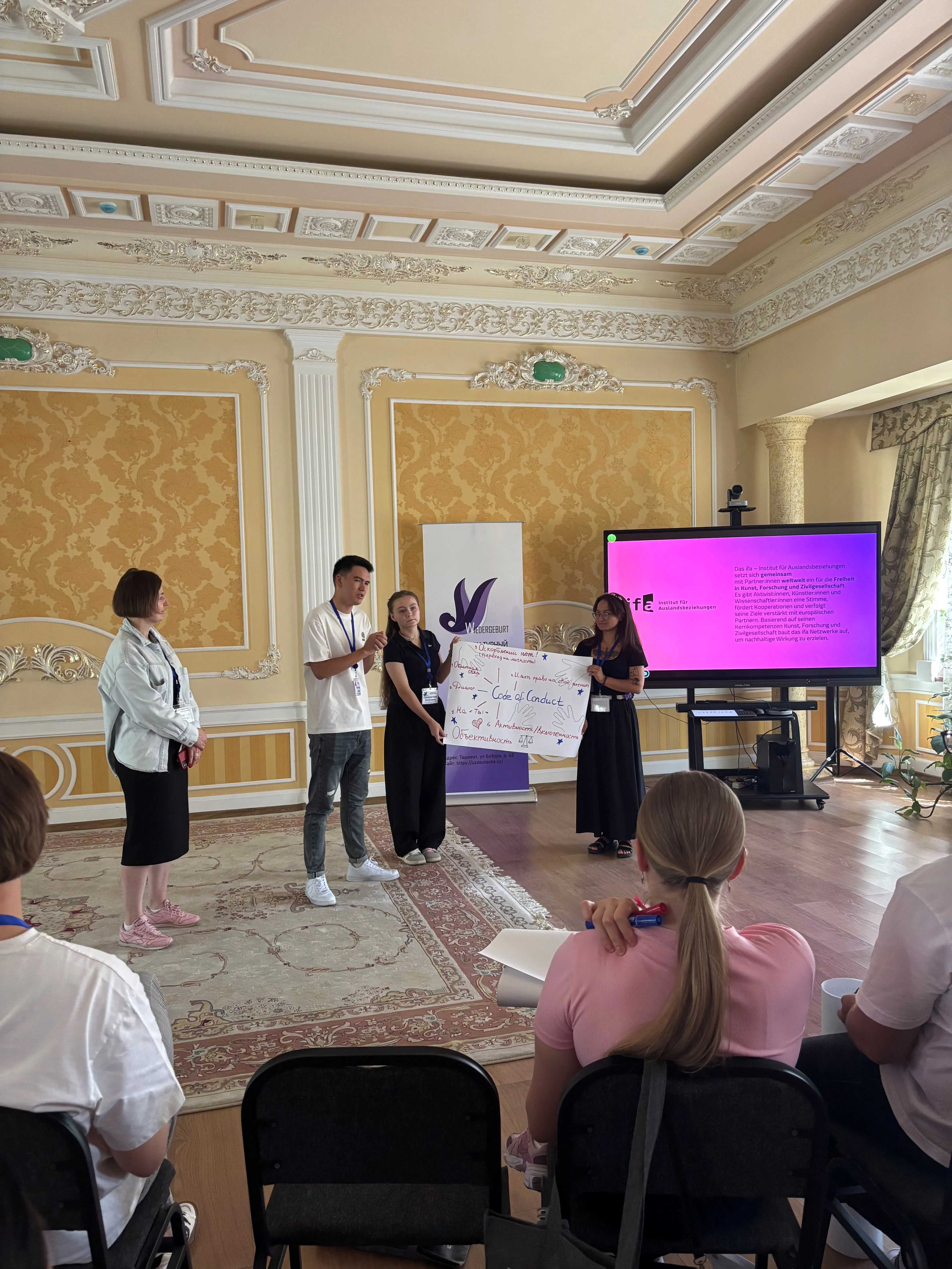 Organisiert durch das Kulturzentrum der Deutschen in Usbekistan„Wiedergeburt“ und das Institut für Auslandsbeziehungen (ifa) bot dasmehrtägige Seminar eine praxisnahe Einführung in Journalismus und digitaleKommunikation. 16 junge Engagierte aus den deutschen Minderheiten starteten EndeAugust 2025 mit dem Seminar ein fünfmonatiges Medienschulungsprogramm, das sieauf ihrem Weg zu Journalist/innen und Medienschaffenden professionell begleitensoll.