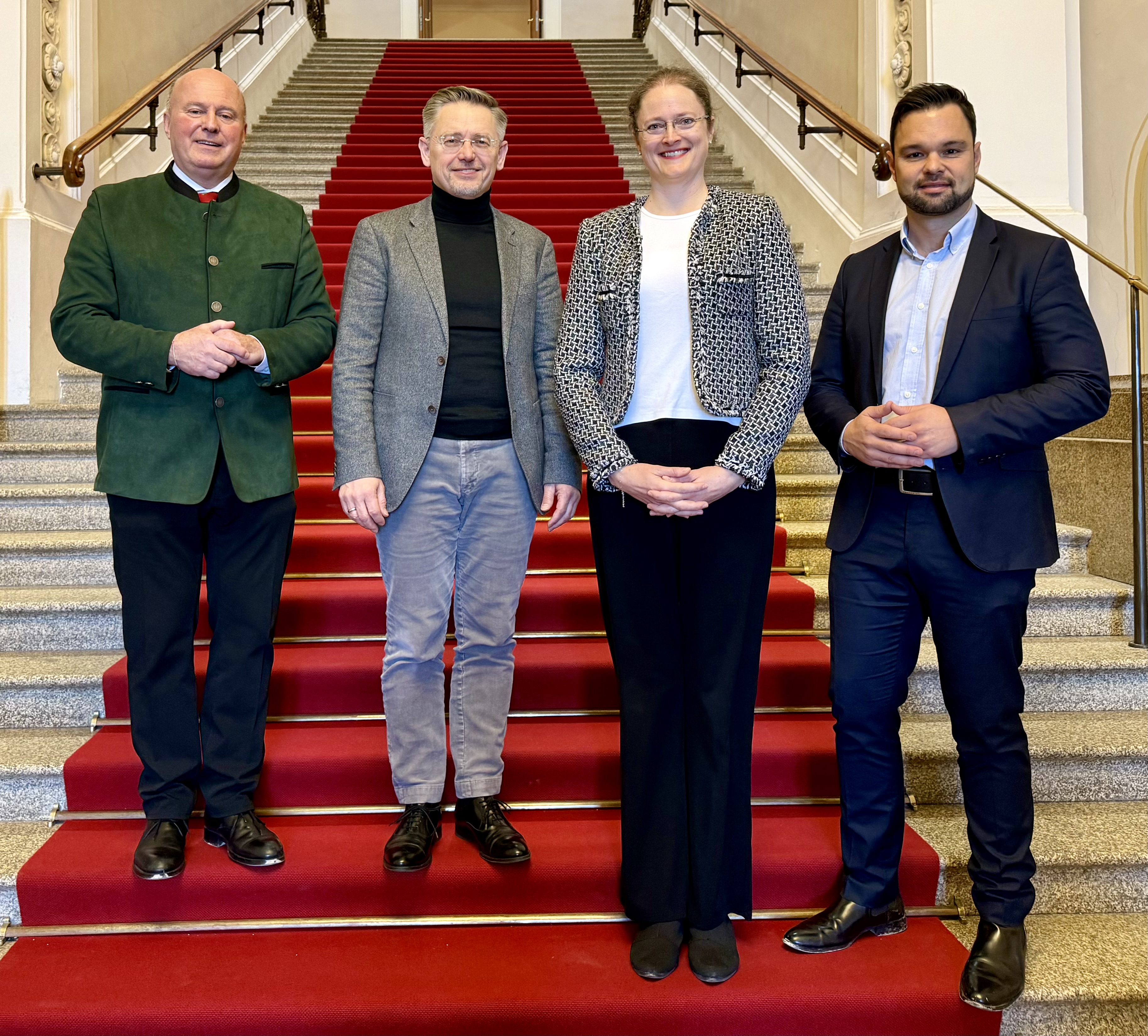 Die Stiftung Verbundenheit führte in München eine Reihe konstruktiver Gespräche mit Vertretern der Bayerischen Staatsregierung, des Bayerischen Landtags sowie mit Institutionen der politischen Bildungs- und Erinnerungsarbeit. Im Mittelpunkt standen Begegnungen mit dem Bayerischen Staatsminister des Innern, Joachim Herrmann, dem Vizepräsidenten des Bayerischen Landtags, Tobias Reiß, dem Antisemitismus-Beauftragten der Bayerischen Staatsregierung und Staatsminister a. D. Ludwig Spaenle sowie mit dem Direktor des Hauses des Deutschen Ostens, Prof. Dr. Otto Weber. Thematischstanden das Jeckes-Projekt der Stiftung Verbundenheit in Israel, die Vertiefung der Zusammenarbeit zwischen dem Freistaat Bayern und Argentinien – insbesondere mit der Provinz Entre Ríos – sowie der neu gegründete Internationale Beirat deutschsprachiger Gemeinschaften (IBDG) im Fokus.