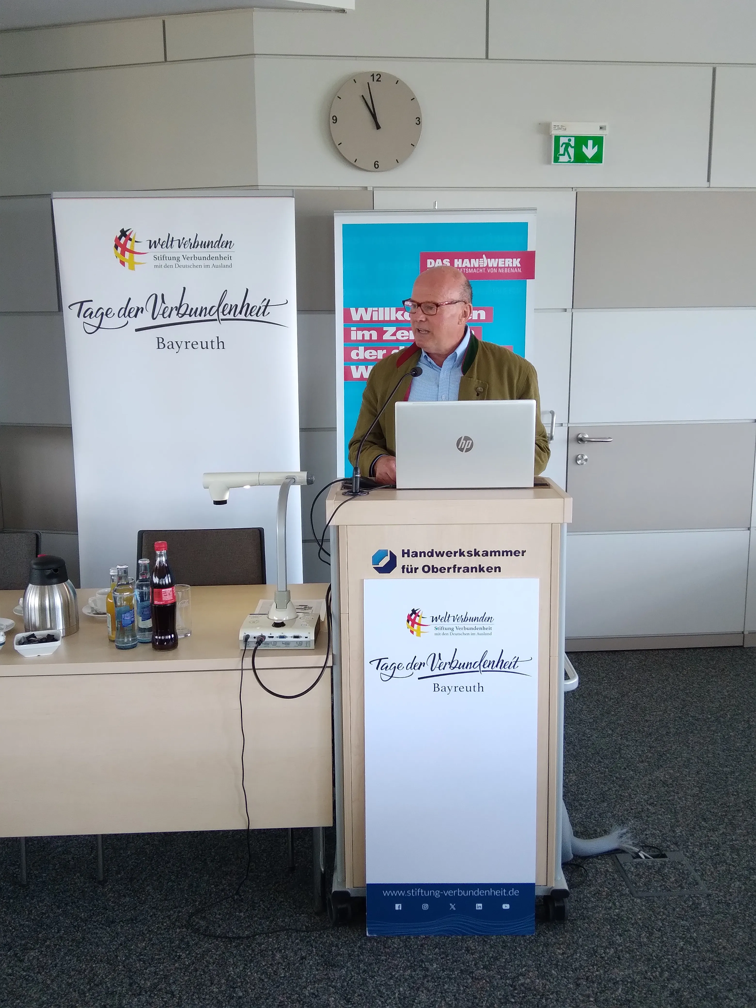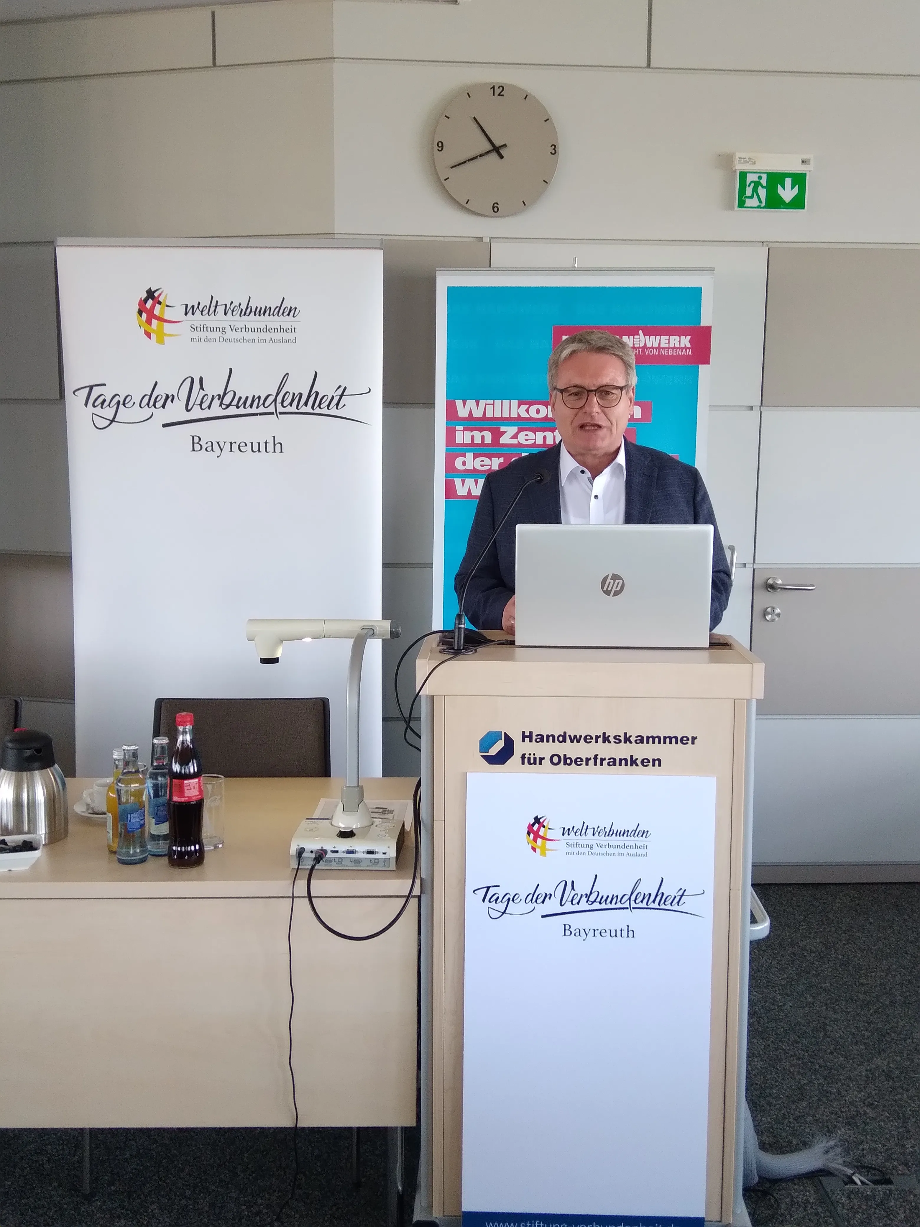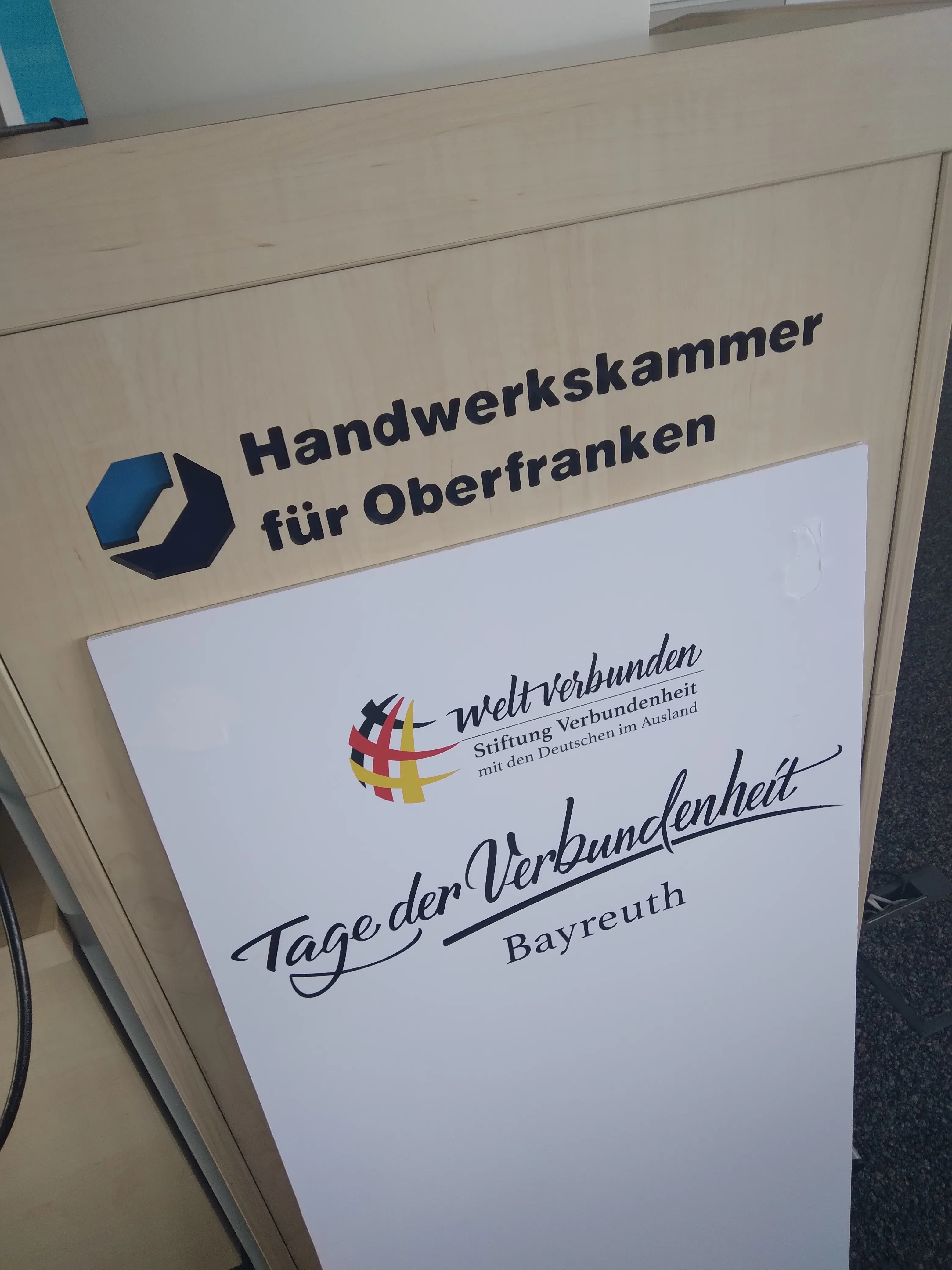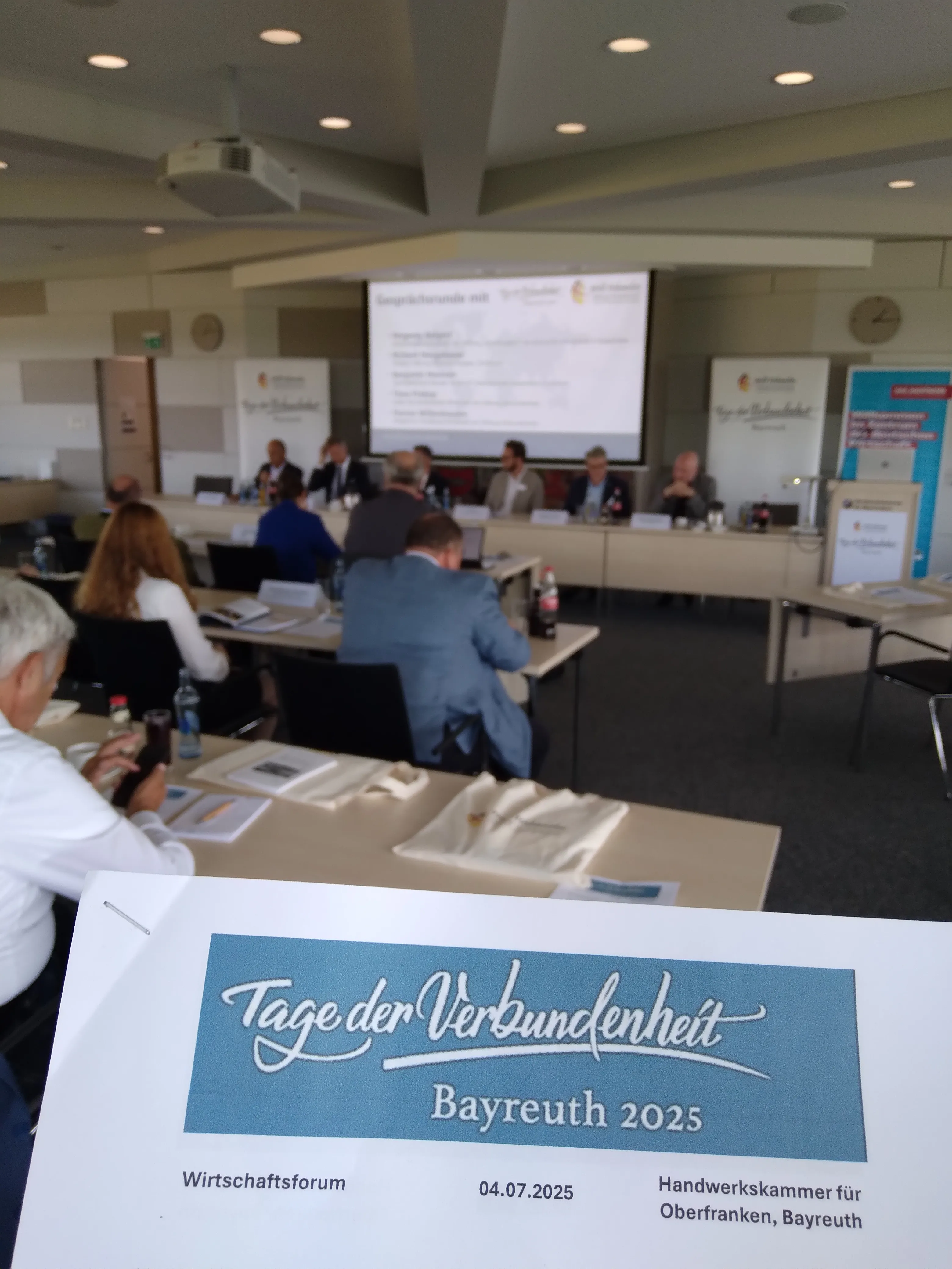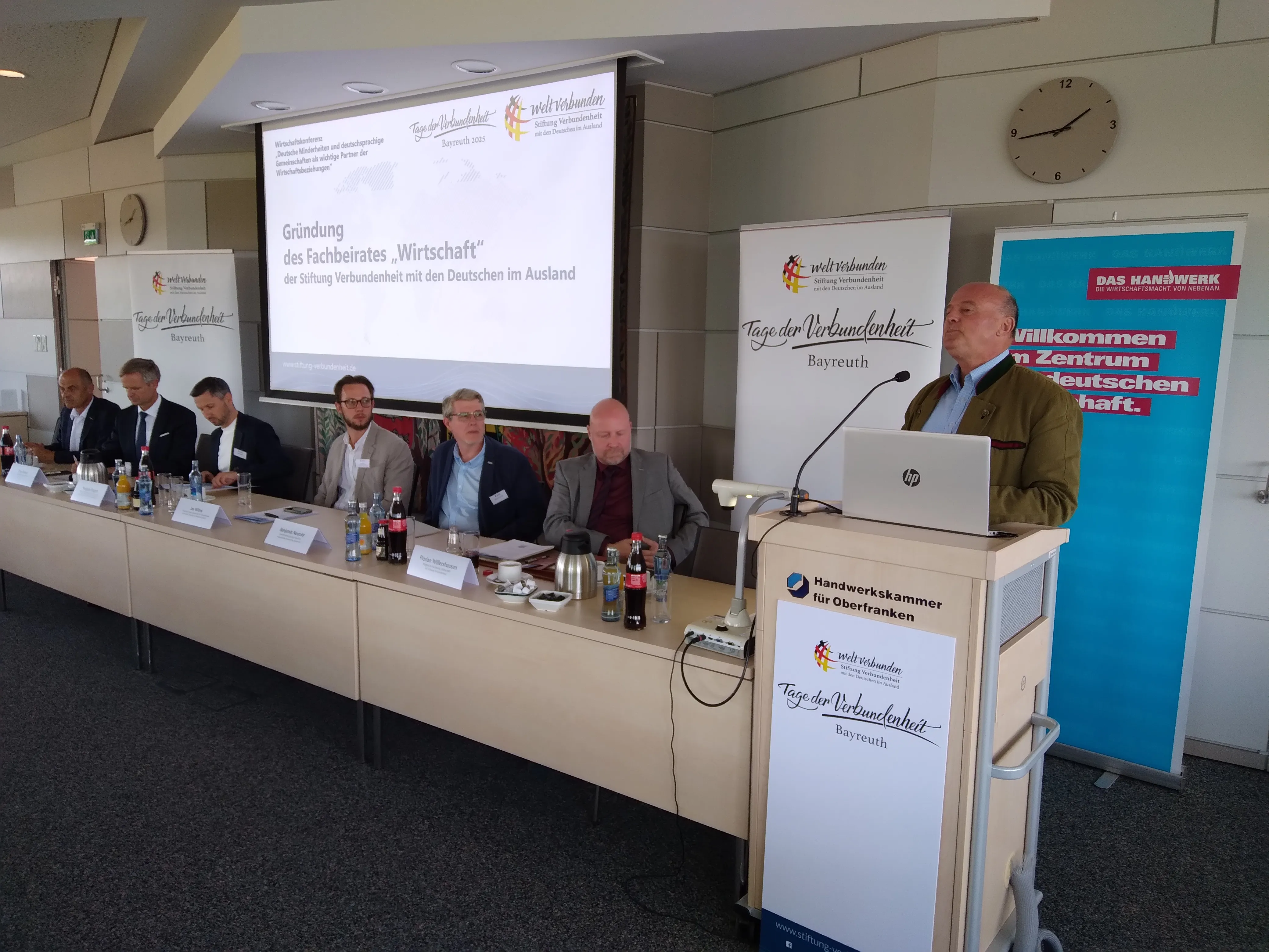 Der Veranstaltungsort und Gastgeber des Wirtschaftsforums war Handwerkskammer für Oberfranken (HWK) in Bayreuth. Ihr Hauptgeschäftsführer Reinhard Bauer richtete ein Grußwort an die Teilnehmenden, in welchem er die Bedeutung der internationalen Öffnung des Handwerks und des Mittelstands sowie einer wirtschaftlichen Zusammenarbeit auf Augenhöhe über Grenzen und Sprachbarrieren hinweg betonte. Auch Herr Josef Zellmeier, MdL, Vorsitzender des Ausschusses für Staatshaushalt und Finanzfragen im Bayerischen Landtag sowie Landesvorsitzender der Karpatendeutschen Landsmannschaft in Bayern, richtete ein Grußwort an die Teilnehmer. Seiner Ansicht nach sollten Landsmannschaften nicht nur Kultur und die Erinnerung an die Vergangenheit pflegen, sondern den Blick auch stets nach vorne richten. Gerade aus gemeinsamen kulturellen und verwandtschaftlichen Beziehungen könnten Brücken gebaut werden und Bayern habe bereits eine lange Tradition der Kontaktpflege zu seinen Nachbarn und den deutschen Minderheiten im Osten. Das Wirtschaftsforum der Stiftung bezeichneteZellmeier als „gelebte Weltverbundenheit“.